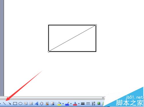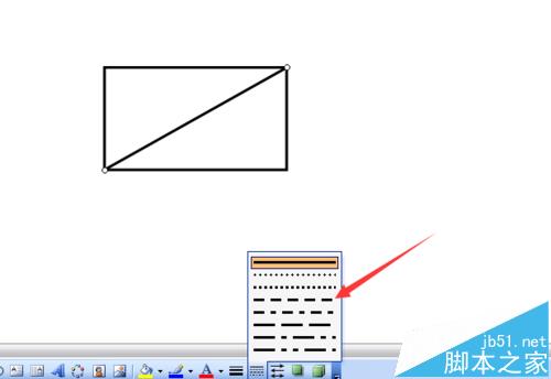4、选中对角线,单击虚线线型工具,选择一种虚线线型。利用截图工具把矩形截图后复制到剪贴板。