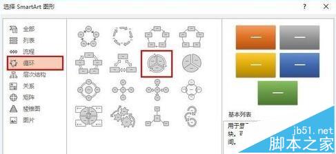 1、打开ppt2013,然后点击插入→smartart图形→循环→分段循环,如图所示