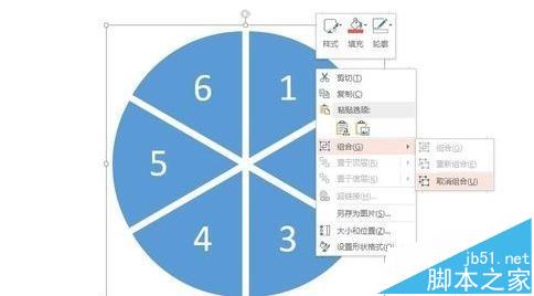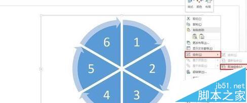 5、再次鼠标右键点击图形,选择“组合”→“取消组合”