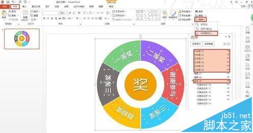 9、将转盘和奖项文字组合,可以用选择窗格操作