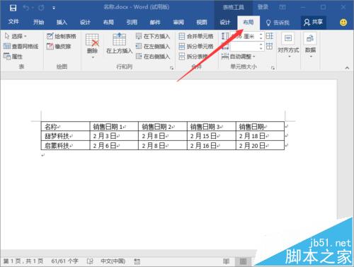 2、选择需要转换的表格,打开菜单栏的“布局”选项卡。如图所示;