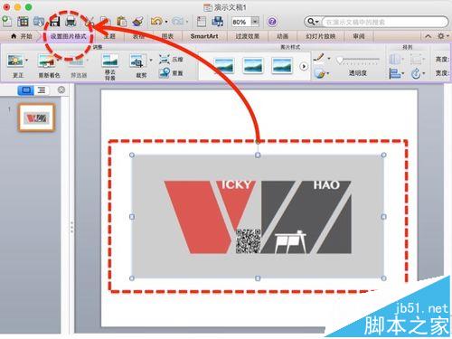 1、选中图片,点击上方工具栏中的"设置图片格式"。