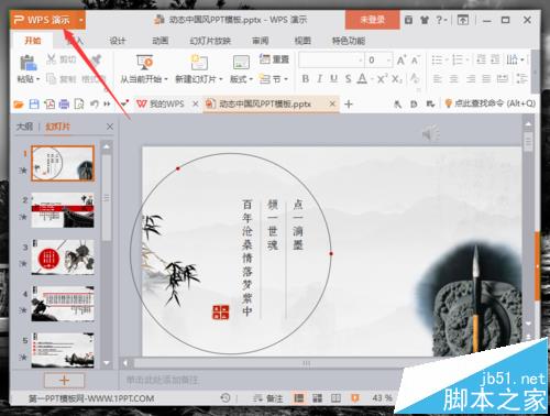 1、在电脑桌面的wps演示程序图标上双击鼠标左键,将其打开运行。打开需要编辑的文档。如图所示;