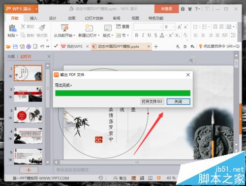 6、文件输出完成后,根据自己的需要点击“打开文件”或者是“关闭”按钮选项。如图所示;
