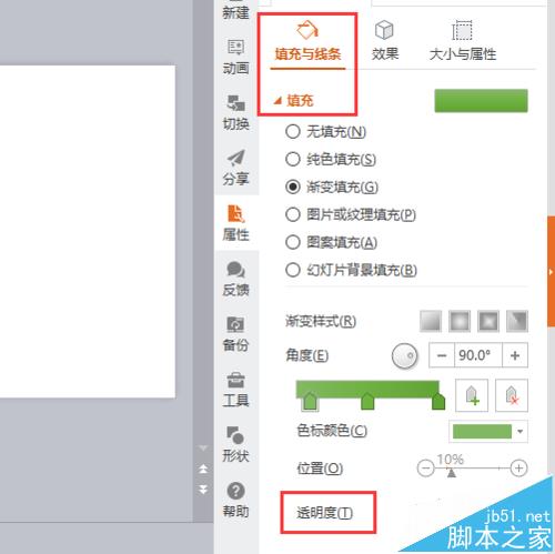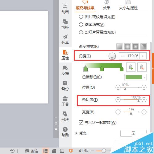 在调整透明度过程中,可通过调整角度,确定透明度是从上到下还是从左到右。
