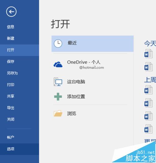 1、再来设置Word:创建一个空白文档后,单击“文件”→选项。