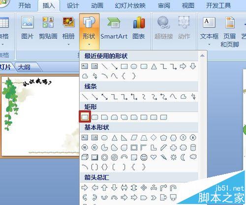 1、视图菜单里打开网格线。插入——形状——矩形。按住shift键拉出一个正方形。