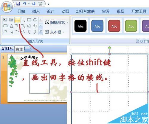 5、复制横线,格式工具栏中,点旋转,向右旋转。将横线改为竖线。田字格完成。