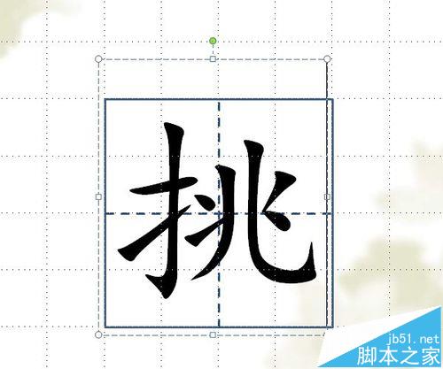 3、输入文字。这里以“挑”字为例。输入完成,移动左右键,将文字放置在合适位置。