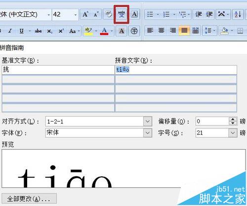 4、第三种方法就是利用word的注音功能,在word中写入文字,点击工具栏里的拼音指南按钮,在出现的对话框里复制拼音,回到PPT中粘贴即可。