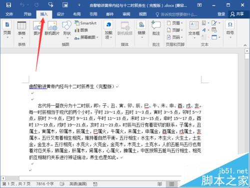 2、在打开的Word文档窗口中,打开“插入”菜单选项卡。如图所示;