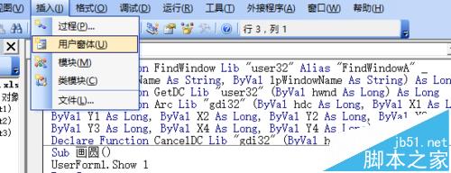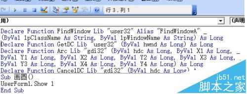 3、在模块1内编程,声明4个函数,并编写一句显示窗体的程序——“画圆”。