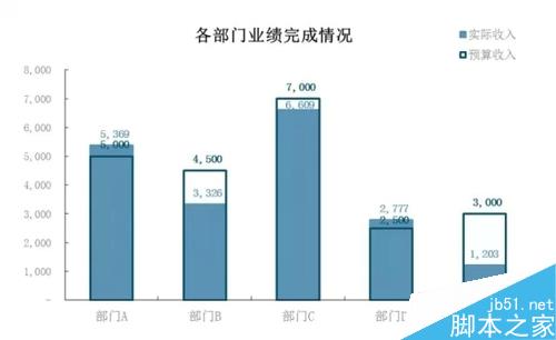 2、选定“预算收入”系列,数据系列格式,在“图案”选项卡将其内部填充色设为无、在“系列次序”选项卡将预算收入下移排在实际收入后、在“选项”选项卡,将重叠比例设为100%;