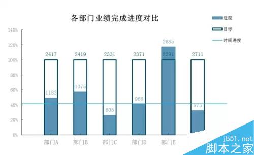 5、同理,依次将其他部门的进度数据标签和目标数据标签链接到相应单元格;