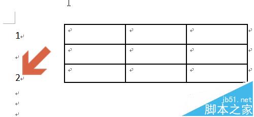 2、按回车键后,文字移动,但表格因为在顶端不随之移动。