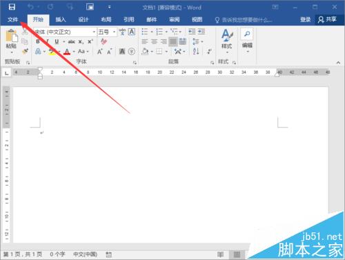 2、在打开的Word文档窗口中,点击左上角的“文件”命令选项。如图所示;