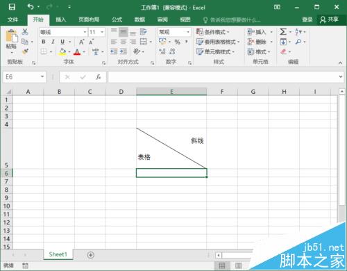 6、回到Excel工作表中,即可看到设置斜线表头后的样式。如图所示;