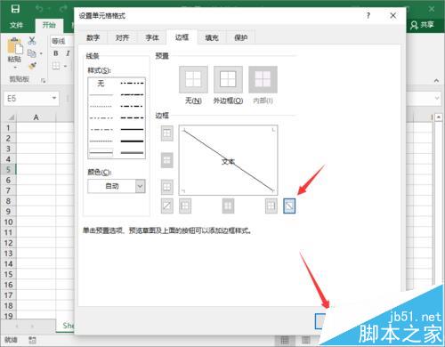 5、在“边框”选项卡中,选择右下角的“斜线”点击它,而后再点击“确定”按钮。如图所示;