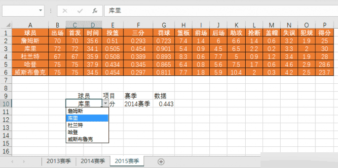 以上就是excel如何快速查询球星在某个赛季的单项技术数据方法介绍,操作很简单的,大家学会了吗?希望这篇文章能对大家有所帮助!