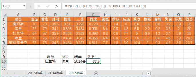 很多NBA球迷每个赛季都会用Excel表记录所喜爱球星多项技术的平均数据。但是,表一多起来,想查询相关球星在某个赛季的单项技术数据时,就显得费事了。那么,如何才能快速查询相关数据,而不需要在各个表中来回折腾呢?下面小编就为大家详细介绍一下,不会的朋友可以参考本文,一起来看看吧!