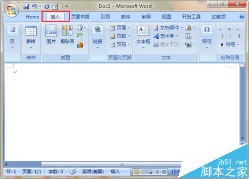 2、点击word2007软件的“插入”菜单;