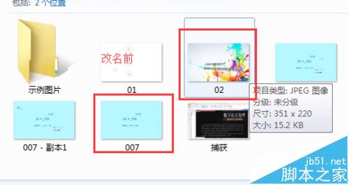 1、找到自己图图片文件夹,将自己的目标图片的名称改动一下,再将另一个相同格式的图片给成原来图片的名称。如下图所示。