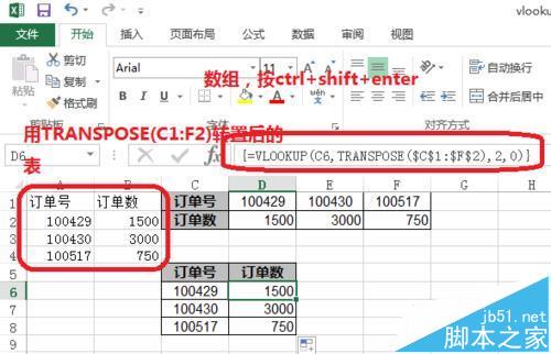 3、如图所示,不利用hlookup函数进行查询,要使用vlookup函数进行查询的话就要利用transpose函数进行转置。