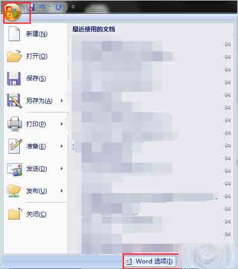 2、点击左上角的 office按钮,再点击右下角的“word选项”