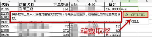 5、由于我们的每箱装6双鞋,对于散鞋(各种货号尺码都有的鞋)可能无法刚刚好装满整箱,比如177双,需要装30箱(29个整箱,余下1箱装3双),需要对箱数取整。