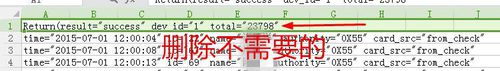 1、我们打卡记录导出的表是一个txt文档,将它用excel打开后,删除不需要的内容,比如该打卡记录的第一行。