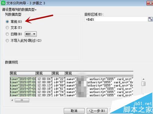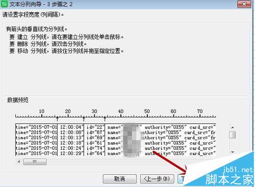 3、在WPS中选中该列,点击“数据——分列”,进入分列,根据步骤选择你要分列的地方,选择好点击“下一步”,选择数据的类型,一般默认。