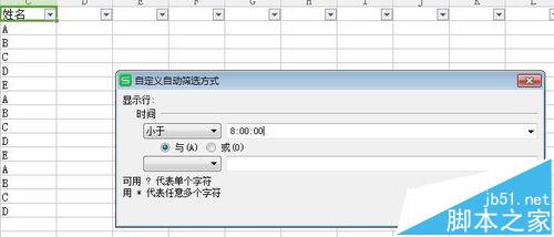 11、记得数据的形式和时间的格式一致,定义筛选方式。点击确定即可显示正常上班的人。