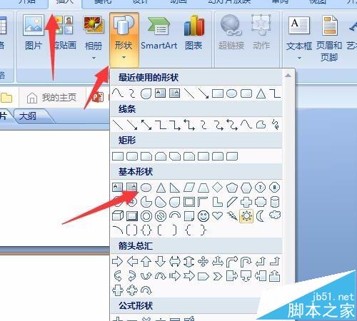 3、插入图案。在导航栏上点击插入,然后找到椭圆形的图案,点击这个图案,就是要这个图案来画小狗的脚印。