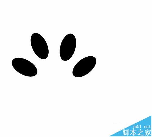 5、画出脚爪。复制第一个椭圆形,然后粘帖出三个一样的椭圆,然后进行角度的转变,调整如图的样子就差不多了。