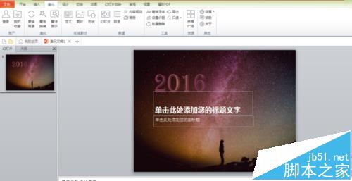 4、如图所示,我们将会看到自己选好的第一个模板被应用到PPT里面了。