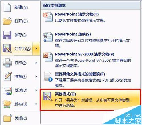 2、单击【office按钮】图标,选择【另存为-其他格式】;