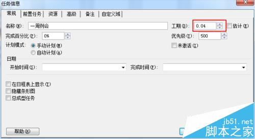 5、工期设置。对于细分至最小的任务要记得一定手动填写工期。