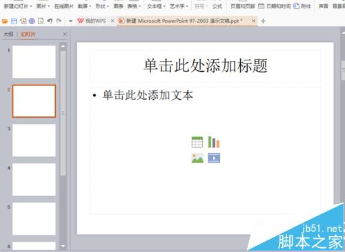 3、在第二张幻灯片里编辑你想要写的东西 或者添加你需要添加的照片。在幻灯片里你可以通过点击对应的小图标添加照片,图片,表格,视屏。