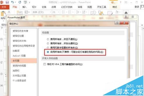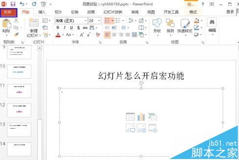 想要在ppt2013中开启幻灯片的宏功能,如何开启呢?下面讲解具体的开启幻灯片的宏功能的方法