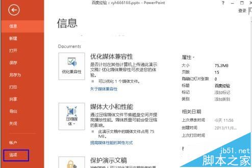 3、弹出如图所示界面,点击“选项”