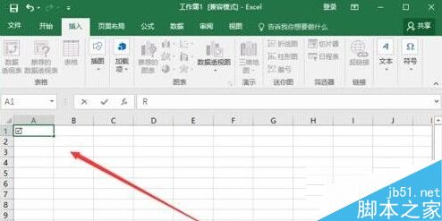 7、关闭符号对话框,返回到Excel工作表中,即可看到插入的打勾方框。如图所示;