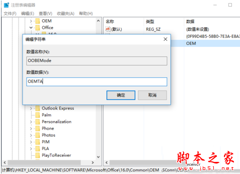 4、依次展开HKEY_LOCAL_MACHINE\SOFTWARE\Microsoft\Office\16.0\Common\OEM\OOBEMode HKEY_LOCAL_MACHINE\SOFTWARE\Wow6432Node\Microsoft\Office\16.0\Common\OEM\OOBEMode