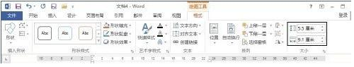 Word2013制作名片步骤2:在文档中拖动鼠标绘制一个文本框,然后在“格式”选项卡的“大小”组中设置文本框的高度和宽度,如图2所示。