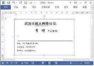 粘贴名片后的文档效果