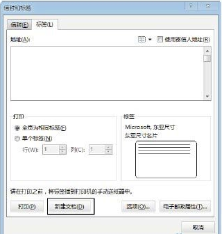 单击“信封和标签”对话框中的“新建文档”按钮关闭对话框,如图7所示。