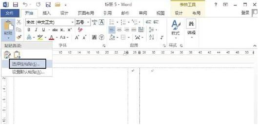 Word2013制作名片步骤7:此时Word 2013将创建一个新文档,并在新文档中根据设置的名片大小创建表格。选择创建的文本框,按“Ctrl+C”键复制文本框。然后切换到创建的标签文档,在“开始”选项卡的“剪贴板”组中单击“粘贴”按钮上的下三角按钮,在打开的列表中选择“选择性粘贴”选项,如图8所示。