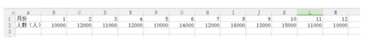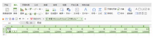 2、双击打开excel文档,在表格中输入需要分析统计的数据。如某地每月旅游人数。