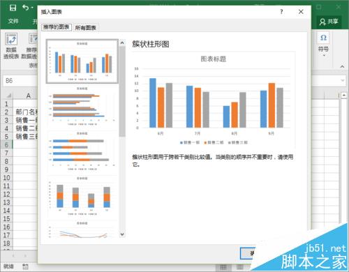 4、点击“推荐的图表”按钮选项后,这个时候会打开“插入图表”对话框。如图所示;
