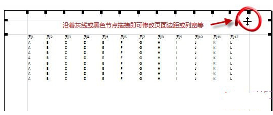 此时预览窗口会出现一些灰色线条和黑色节点,用鼠标拖拽它们即可轻松调整页面的设置。