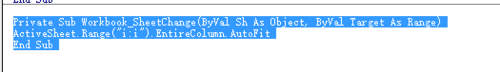 6、在thisworkbook中设置的动作不需要运行可以直接生效,我们可以现在在i列输入数据,可以看到i列自动调整了符合i列内容最长内容列宽。